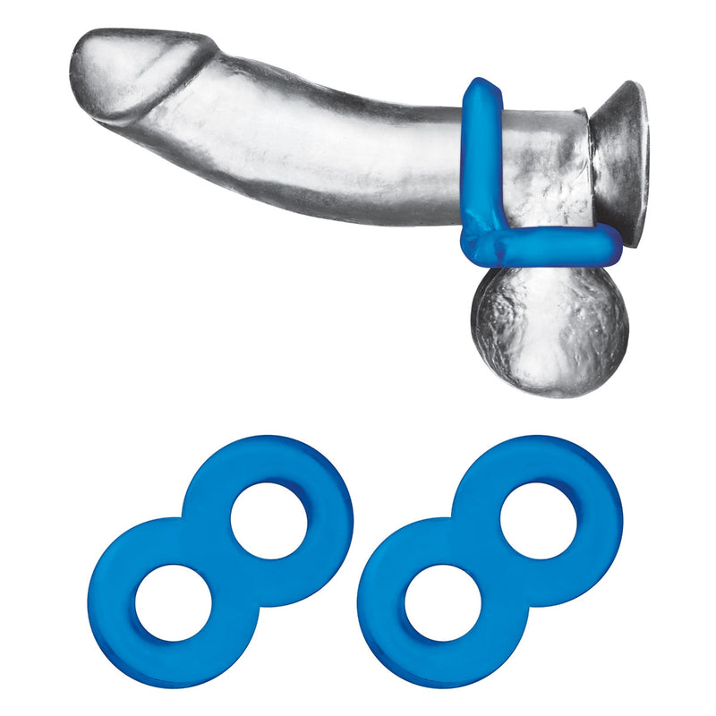 This set of cock rings can be used individually to enhance an erection for pleasurable penetration, as well as mixed and matched for even more intense cock and ball stimulation. These rings also provide external stimulation for the partner on the receiving end of the penetration.