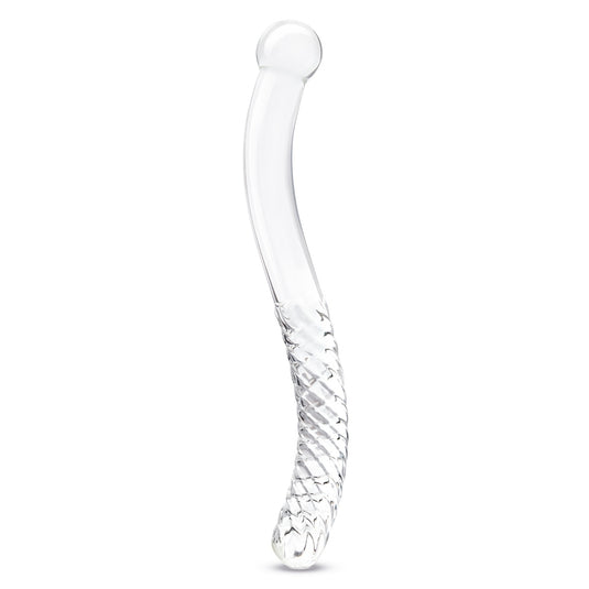 Enter a world of pleasure with the Glas 12 Inch Girthy Ribbed G-Spot Glass Dildo that's crafted with two distinctly shaped ends to satisfy your every need. A smooth, curved end features teardrop-sh...
