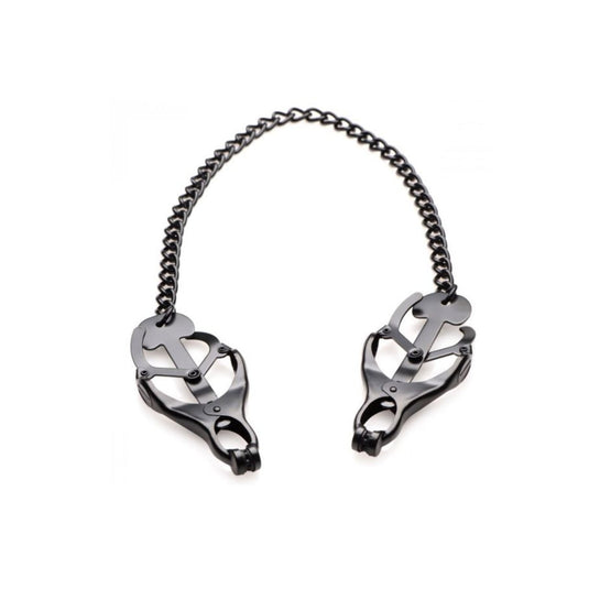 A timeless classic. The Monarch Nipple Vice provides a light initial sensation...until the chain is pulled. They become increasingly harsh as more tension is added to the chain. The clover-style me...