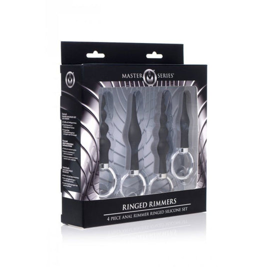 Master Series Ringed Rimmers 4 Piece Anal Ringed Butt Plug Set Silicone Black