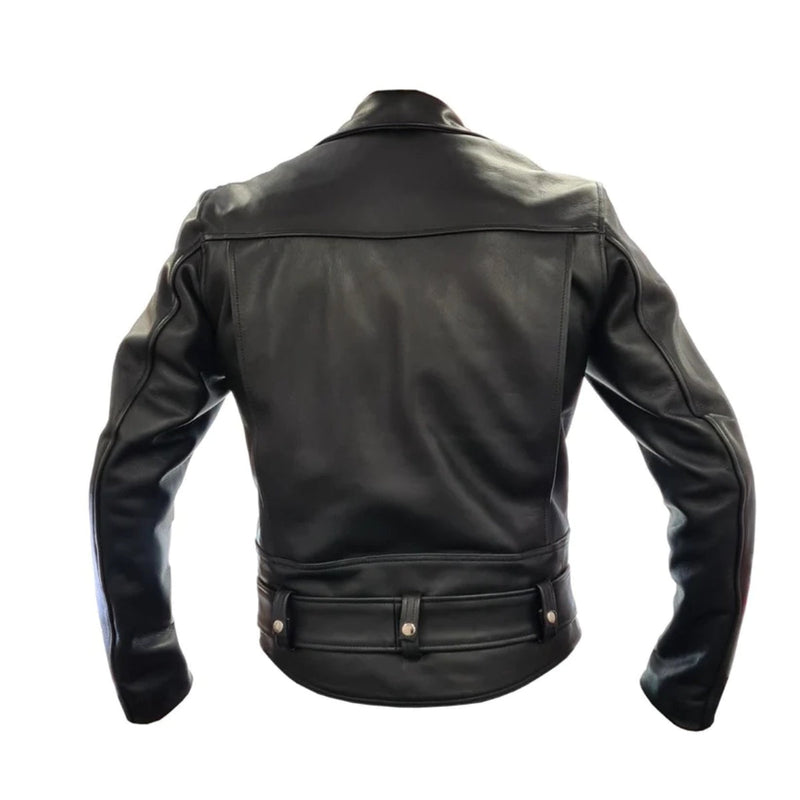 Get that classic fetish look with this high quality police jacket from Prowler RED. Made from the highest quality hides, this jacket is tailored to give you a sexy leatherman look when you wear it. The front pocket details are finished with shiny silver zips, and there is an adjustable belt at the bottom to give your desired finished look. This jacket is inspired by those classic looks from yesteryear that remain timeless, and looks hot as hell when worn!