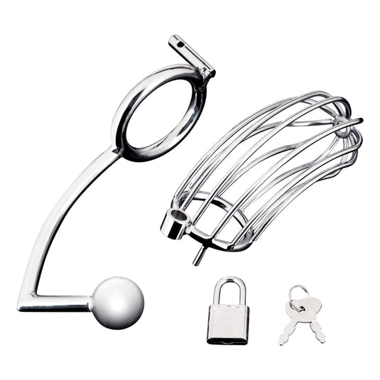 Intensify your partner play with the denial of an erection as a firm metal bulb makes its way into your rear. The cool, hard sensation of the ring around the penis extends to the often-ignored perineum area with its extension that comfortably buries into the butt to target pleasure zones. Enjoy torturously satisfying sensations with a device to keep your partner wanting more. This multi-pleasing toy is made to hit all the spots.