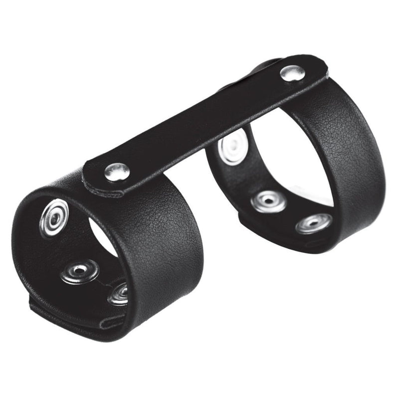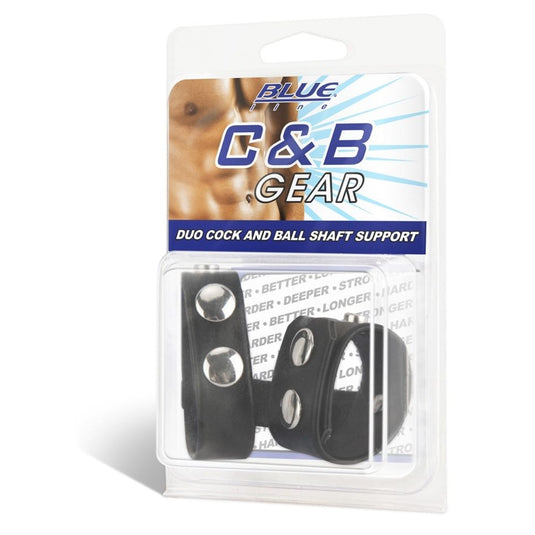 This duo snap cock and ball ring provides sexual stimulation, with additional support from reinforced shaft strap. Larger ring fits around the cock and balls. The small ring supports only the penis. Last longer and experience harder erections.