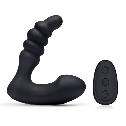 Take a multi-sensory romp in the rump with the Prodder Prostate Massager from Blue Line. Provide simultaneous stimulation to your prostate and perianal area with independent motors to give your pleasure zones individual attention, or take your body on a tantalizing trip of forceful orgasms with dual motor power. Pummel your hole with a 4.5 ribbed shaft made of 100% body-safe silicone to give your sphincter a stretching while quaking your prostate. Independently controlled tip and base vibrations, send your body into euphoria at your own speed with 3 vibration intensities and 4 vibration patterns. With remote control capabilities, take the driver seat hands-free or give control to your partner for a kinky session of sexploration. The 100% silicone body and magnetic charge port make the Prodder safe to use with any water-based lube and super easy to clean with soap and water so you only need to worry about your pleasure.