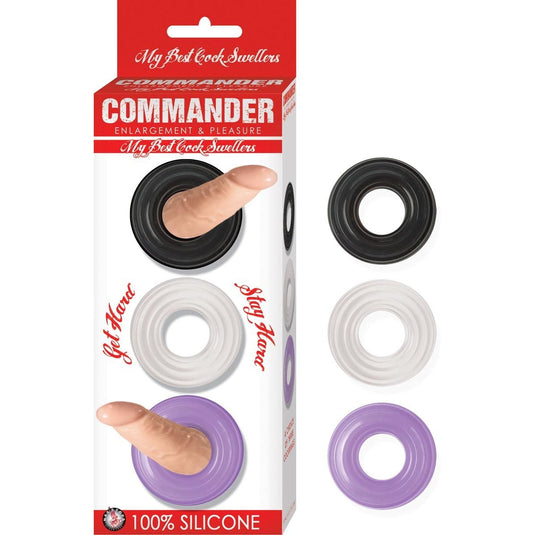 Commander My Best Cock Swellers Silicone Cock Ring 3 Pack Black Clear Purple