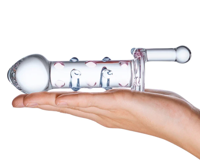 • Handblown and handcrafted glass juicer• Ribbed and nubbed for intense pleasure• Handle allows for easy maneuvering• Compatible with all lubricants• Non-porous & hygienic• Easy to clean• Temperature responsive for sensory play• Hypoallergenic• Fracture-resistant• Couples friendly
