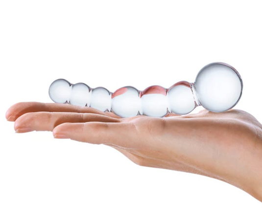 The Curved Glass Beaded Dildo from Gläs is an artisinally crafted, gorgeously designed adult toy made of hypoallergenic, borosilicate glass. This clear, elegantly made product is intended for extensive, long lasting use and is compatible with all varieties of lubricants. It is easy to clean with a dash of water and soap. This Gläs pleasure product is handmade in a specially designed beaded shape to illicit massive arousal and release. It is 5 inches in total length and has a slight bend in its shaft for natural feel and comfortable insertion. The Curved Glass Beaded Dildo retains warmth as well as coldness for versatile and adaptable bedroom action. Gläs products are exceptional in their design and handcrafted to perfection. Whether on display or used during play, the Curved Glass Beaded Dildo is irresistible and unforgettable.