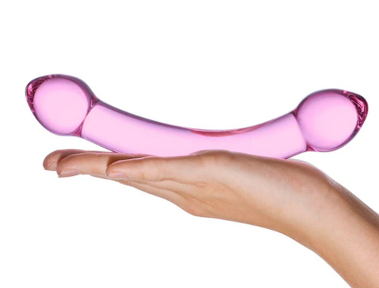 The Double Trouble Purple Dildo is an artistically crafted, purple glass double-headed dildo that enables deep, pleasurable penetration and stimulation for everyone involved. Curved to simultaneously satisfy two users, the Double Trouble Purple Dildo is textured with a zig-zagging ridge along one half of the dildo’s length, and nubs covering the other half. The Double Trouble Purple Dildo features two bulbous tips that allow for easy penetration. Made of fracture-resistant glass, this beautiful dildo is designed to last. It is also hypoallergenic and extremely hygienic. Glass is easy to clean with soap and water. Pair this toy with your favorite lube; it’s compatible with all lubricants. Enjoy temperature play by cooling or heating this toy.