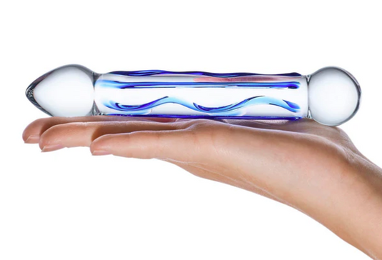 The Full Tip Textured Glass Dildo from Gläs is an artisinally created adult toy that offers a complete, sensual experience. Carefully crafted in dazzling clear and blue glass, this dildo is an impressive addition to any expert's collection, as well as a unique way for beginners to start their sexual exploration. The Full Tip Textured dildo features a pronounced head at its tip for increased stimulation. This product is made from dependable, body-safe borosilicate glass and is compatible with every type of lubricant. It is easy to clean with a quick rinse of soap and water. The Full Tip Textured dildo also retains temperature, granting it the ability to stay warm or cold for adaptable pleasure. This adult toy is 6.5 inches in total length and compatible with all lubricants.