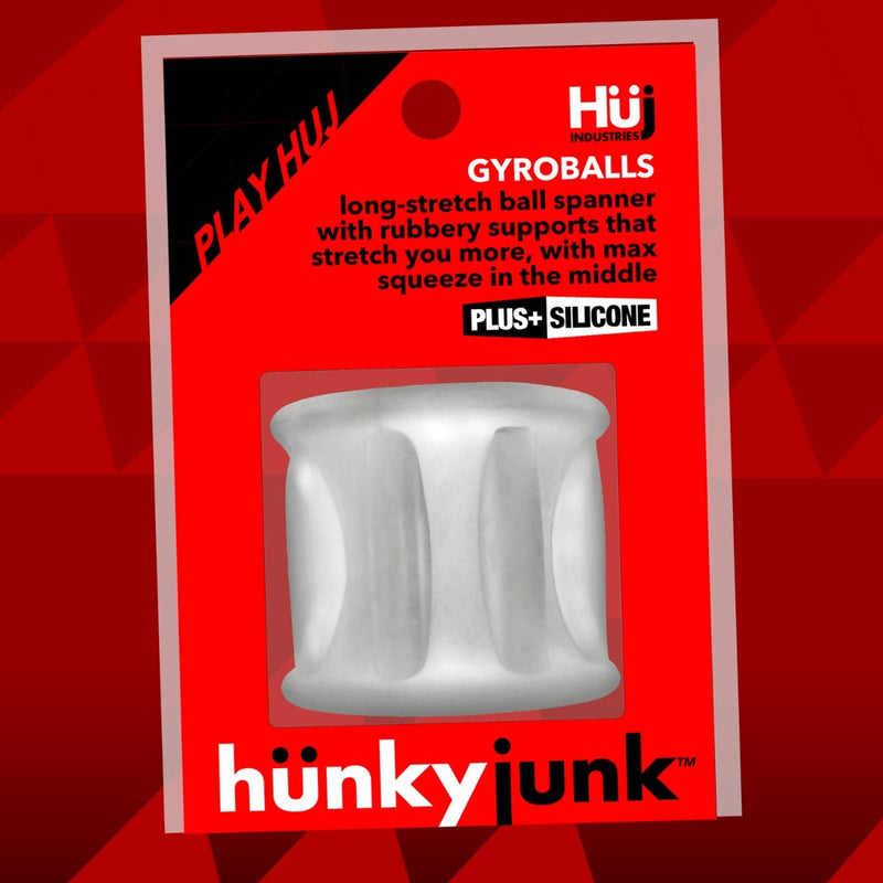 The Hunkyjunk clear ice Gyroballs is a soft stretchy outer hourglass shaped curving ball stretcher with a whopping eight super-stretch ribs for max stretch in a taller ball stretcher. The eight ribs keep the squeeze down for extra grip and tug. The unique Gyroballs is lighter than other larger ball stretchers for longer stretch-time. This eye-catching bronze color is glossy metallic flexTPR.