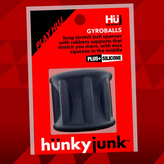 The Hunkyjunk tar ice Gyroballs is a soft stretchy outer hourglass shaped curving ball stretcher with a whopping eight super-stretch ribs for max stretch in a taller ball stretcher. The eight ribs keep the squeeze down for extra grip and tug. The unique Gyroballs is lighter than other larger ball stretchers for longer stretch-time. This eye-catching bronze color is glossy metallic flexTPR.