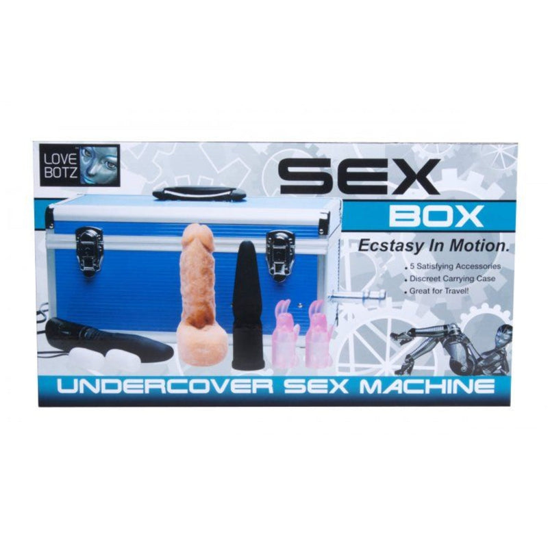 The Sex Box Machine comes complete with everything you need to enjoy orgasm after orgasm, hands-free! This powerful undercover box lets you attach compatible toys to the high powered, motorized piston arm and experience realistic, multiple speed thrusting action that is sure to satisfy! Included are a dildo attachment, a vibrating bunny tickler, two high powered bullets, and a tapered probe for anal penetration. The one touch remote doubles as a multi-speed vibrator for more stimulation. The case is discreet, with snap locks for privacy and a hollow compartment that will carry everything you need for hours and hours for pleasure!