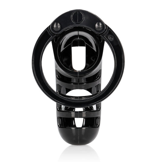 Take your BDSM play to the next level! Control or be controlled, that’s the question! The Man Cage Chastity Cages are manufactured from high-grade polycarbonate, a very light, durable and hypoallergenic material. The cage consists of three parts which fit perfectly together. The two guidance pins connect the top parts and the oval taper pin connects the rings with the cage. A variety of rings in different sizes and distance pieces will allow you to create the perfect size! The rings have a comfortable fit and are absolutely safe. A metal lock or tie-wrap lock can easily close the cage. The included tie-wrap locks ensure that they will not trigger the alarm of metal detectors at parties, festivals or even airports! As hygiene is very important while wearing a cage, the superior Man Cage series are equipped with a variety of vents and a urination opening. The cage makes it impossible to get an erection but it will be, after liberation, super intense, just like the freeing orgasm to follow! The Man Cage Chastity Cage gives the key-holder optimal power over sexual gratification!