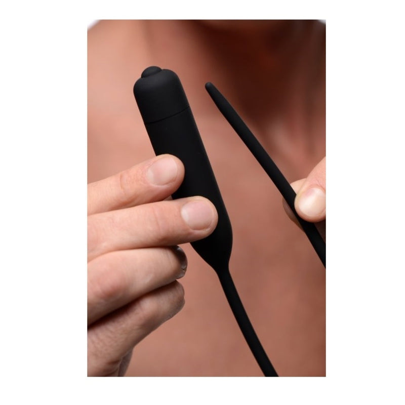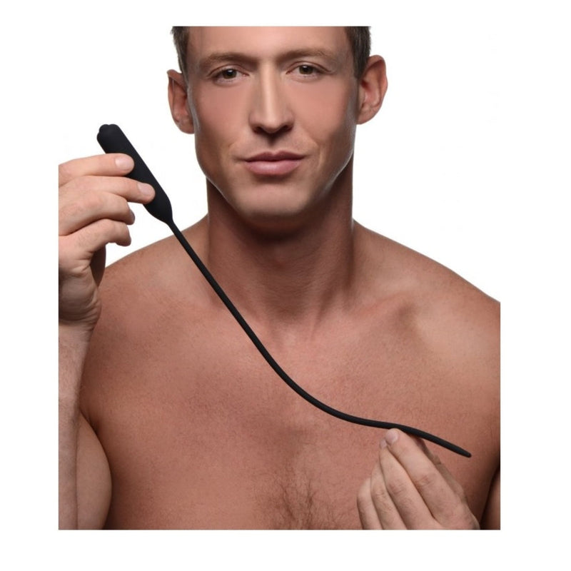 Our longest vibrating sound yet, the Cadence Extreme gives you 14 inches of insertable length to play with! The flexible silicone is perfect for following the natural curves of your shaft, as well as transmitting the powerful vibration! Use the simple one-touch button to cycle through 3 speeds and 7 pulsing patterns to find the sensation that feels best thrumming through your penis. This premium silicone urethral sound is non-porous, phthalate-free, but not compatible with silicone lubricants. Clean this waterproof device with mild soap and warm water.