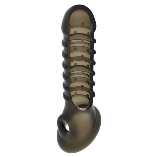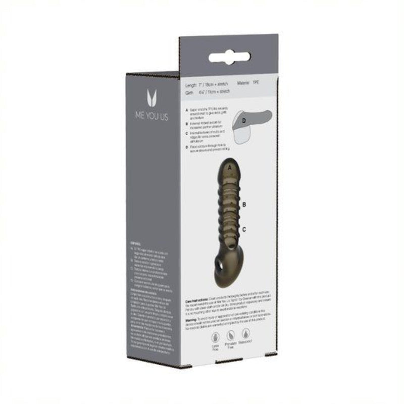 The Me You Us Emperor penis sleeve is a stretchy, comfortable solution to an instant size boost. This sleeve doesn’t just enhanced your length and girth, it also amplifies texture. It features a textured interior that has nubs and ribs for the wearer’s own pleasure.