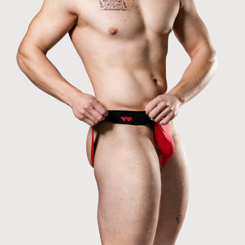 The classic jock design invented by F.C. Bennett in 1874 remained unchanged till today. The many copies on the market today show no real difference to Bennett’s original design and function. The REV2 can be called revolutionary because of its new additional reversible function which gives you the choice to wear the jockstrap in black or reverse in red colour.