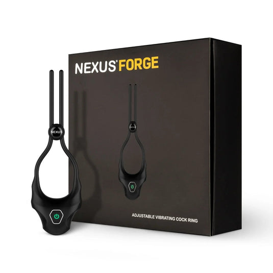 Adjustable and stimulating the Forge Vibrating cock ring by Nexus is a performance enhancing and pleasure providing device. With its adjustable design Forge allows users to customize their fit with the slide toggle for a comfortable but snug fit during play. The 6-speed vibrator can be positioned above or below the penis to stimulate a partner or it can be worn below the testicles for use as a perineum massager for the user. With providing a tight squeeze around the penis this helps with maintaining a strong and hard erection and when worn below the testicles it can even help delay ejaculation perfect for those long desirable play sessions. Made from 100% body-safe silicone and is USB rechargeable this vibrating cock ring will improve performance and deliver stimulation it's the perfect addition to the bedroom for anyone wanting to take their sex game to the next level.