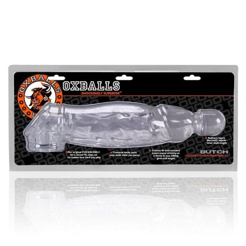 Butch is a blubbery cock sheath with a built-in Cocksling-2 attached at the base. It's made from signature SuperFLEXtpr so it's super-soft and squishy but firm enough to enhance the natural girth and length. Each Butch cock sheath comes with a fitted bullet insert designed to help you customize the fit and feel. The blubbery insert is designed to lock into the inner chamber, letting you adjust the tightness of the inner length on your shaft.