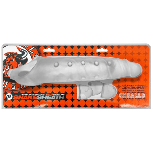 Add extra inches with our lengthy new Snake cock sheath. Snake is the longest sheath we’ve ever produced and the lush, velvety plus+SILICONE™ material feels like the real deal. The tapered design and veiny texture are made for a seriously deep reach. Snake includes 3 bullet inserts that let you discreetly customize the inner fit and feel on your shaft. The base is designed for extra grip on your sack and to keep Snake snugly in place.