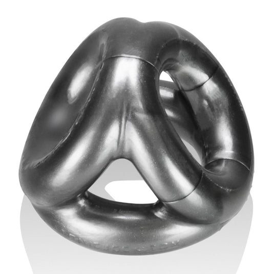 This silver cocksling has a futuristic design that features 3 conjoined cock rings that fit around your shaft, your balls and the base of the penis. This is a great accessory for a bulkier look and feel - and adds instant visual appeal to your look. The Oxballs Tri Sport Cocksling Steel can be worn in a number of exciting ways - pull your balls through the wider opening for a greater grip on your shaft, or pull them through the sides and use this sling as a ball separator. With the Tri-Sport, your imagination is the only limit! This is a fantastic toy for men who love fuss-free pleasure with maximum results. It measures 4.45cm in height and weighs 1.3 oz. A water based lubricant enhances the fun.