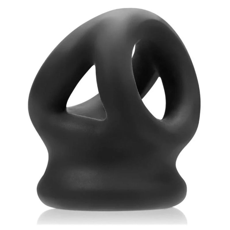 The Tri-Squeeze is everything you love about the Tri-Sport cocksling but with a built-in ball stretcher at the base. Just like Tri-Sport, Tri-Squeeze is modeled after traditional steel 3-ring cock cage but without all the discomfort and rigid material. Tri-Squeeze’s unique design and shape make it one of our most versatile slings. Each ring is a slightly different size so you can choose how you wear it. Tri-Squeeze is made from new super-soft, stretchy PLUS+SILICONE, a blend of silicone and TPR--soft like silicone, strong like TPR.