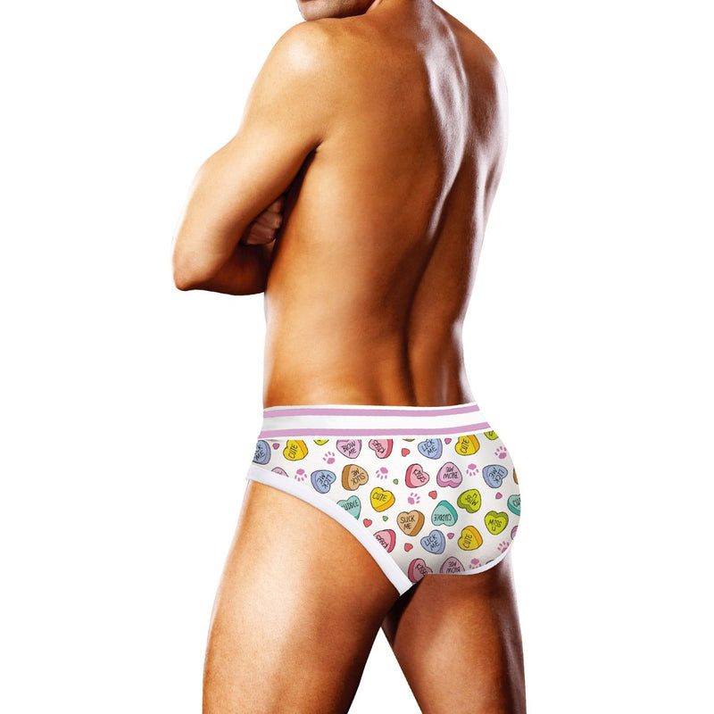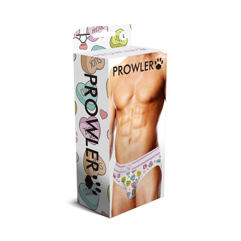 Sweeten up your intimate apparel style with Prowler’s candy hearts-themed briefs that are perfect for the romantic Valentine’s Day holiday. Featuring sexy and sweet messages such as “Cuddle,” “Blow Me,” “Miss You,” “Lick Me” and more, this brief style is the perfect treat for a partner, regardless of who is wearing it. Featuring colorful candy heart illustrations and Prowler’s signature paw print in pink, this brief is naughty and nice. The thick waistband is comfortable while also offering snug support.