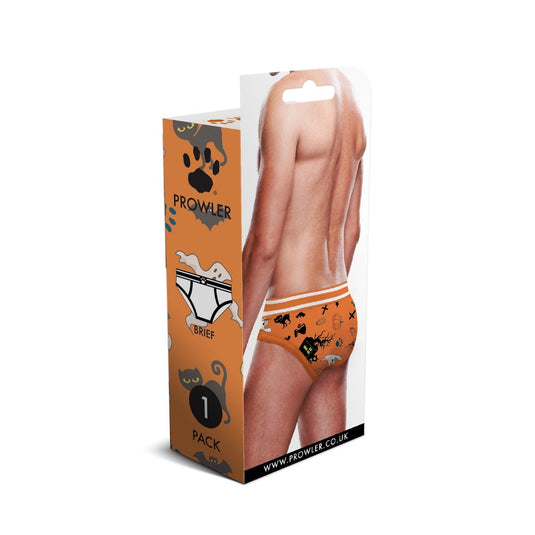 You are sure to scare up some fun with this spooky, but sexy, Prowler Brief. Crafted from a stretchy and breathable material, this brief has a fitted cut and an all over orange design. It is designed to be a brief brief with a white waistband and an orange, black and white printed design. The briefs are available in sizes from XS-XXL, so make this your sexy Halloween costume this year!