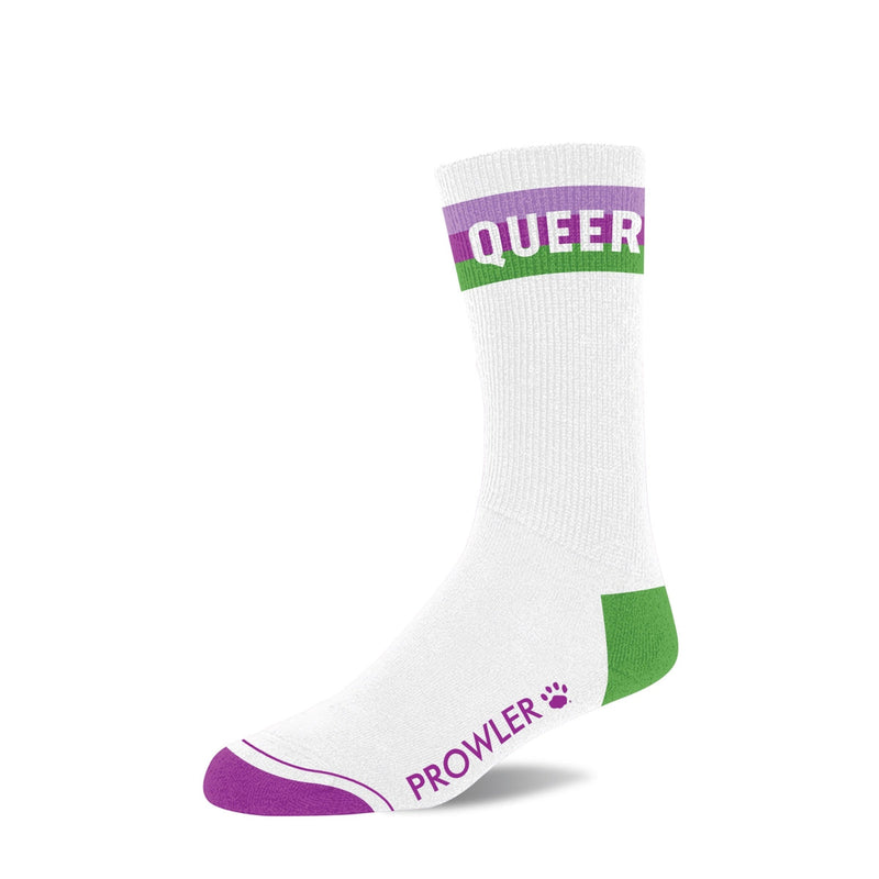 Step into the world with confidence and pride with Prowler's Queer emblazoned socks. Made of a snug, breathable material, these socks are designed for all-day comfort. What sets them apart are their the vibrant colors on the band and toe and heel that allow you to express your style and personality while showcasing your pride. For those who appreciate the Prowler brand, you'll find the iconic logo discreetly featured, making a subtle yet meaningful statement. These socks are more than just an accessory; they're a symbol of self-expression, resilience, and unity. Whether you're at work, out with friends, or at a pride event, these socks will not only keep you comfortable but also help you stand tall and proud, showcasing your unique identity with every step. Celebrate your individuality and embrace your Queer Pride with these stylish socks.