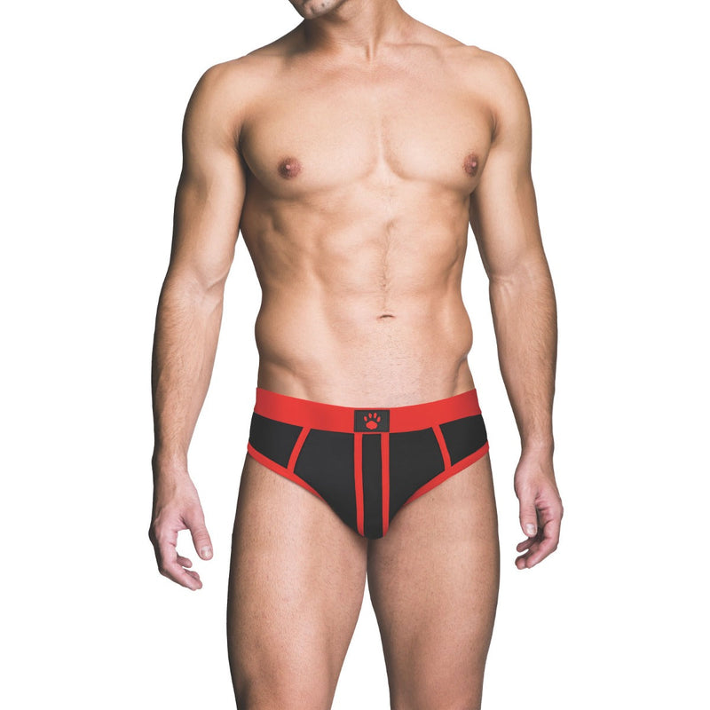 These sexy red backless fetish briefs from Prowler RED are your new go-to underwear choice for getting down to business in the bedroom or out at sex parties. Made from 82% polyester and 18% spandex, these briefs feature red piping across the black pouch, with the Prowler Paw logo in the middle of the waistband. These briefs feature an open back, so your butt is always on show and ready for anything.