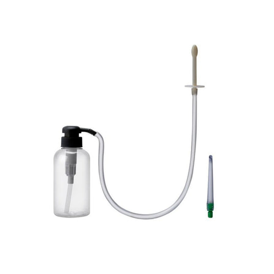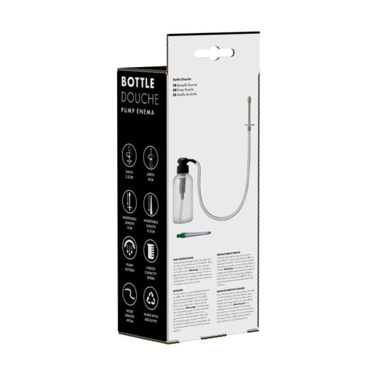 The Prowler RED Bottle Douche is a convenient pump enema that includes everything you need for quick and effective cleansing. The bottle can hold up to 300mL of liquid and has a pump top to allow for easy water flow. The bottle attaches to an included hose that measures 49cm in length. The set includes two nozzles to choose from depending on your preference. One nozzle features a smooth tapered tip, while the other is slightly rounded for added stimulation. This set is discreet, easy to store and travel-friendly.