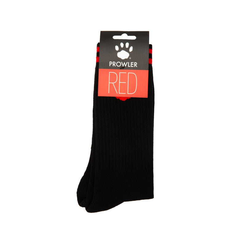 Socks are a kinky fetish for guys, and these socks have been designed to look both authentic and fetish inspired. Made from soft material, these crew socks feature three coloured stripes at the top, as well as the Prowler Paw logo just below them. You can choose from black & red or white and red for a sporty, masculine look.