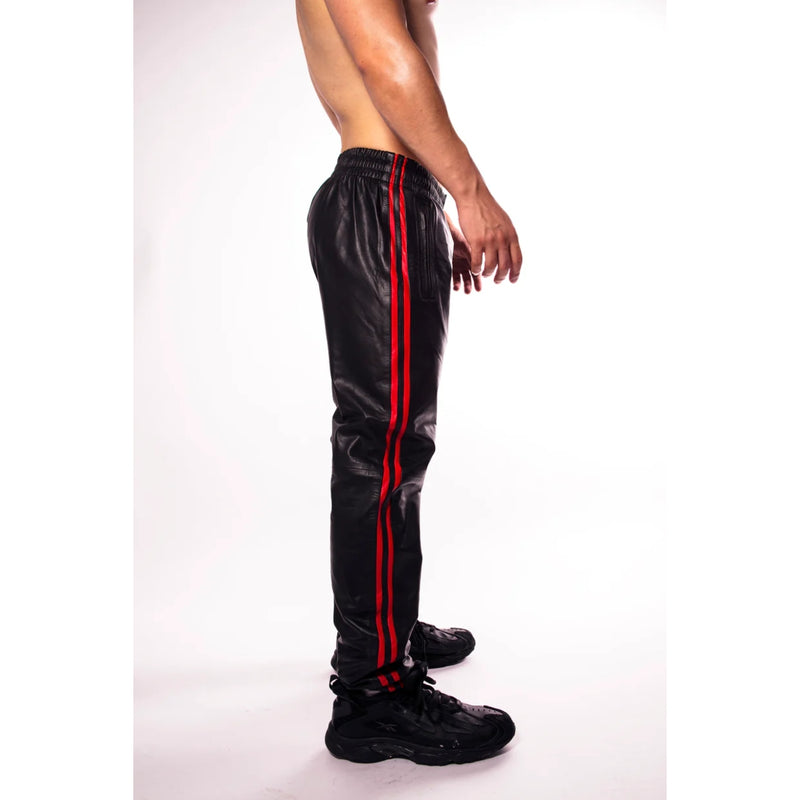 These leather sports joggers from Prowler RED are made from soft leather hides and feature an elasticated waistband for maximum comfort. They are stylised with double striped down the side of each leg for a sporty look.