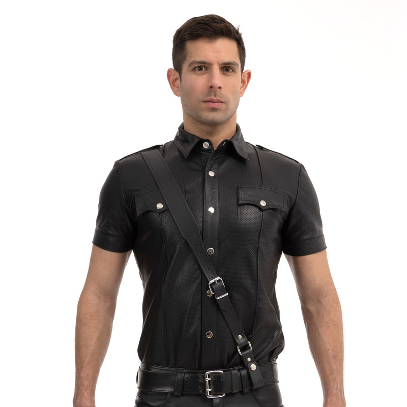 Sam Browne Belts are a staple in the BLUF scene but that doesn't mean you need the full outfit to make it work. Throw it on over a T-shirt or lose the T-shirt completely and let the leather touch your skin.
