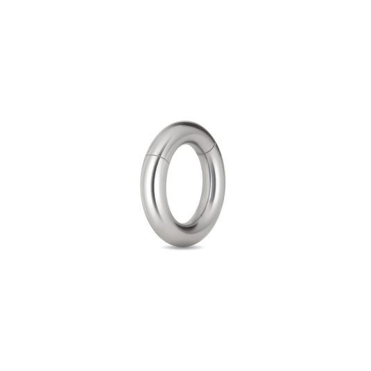 Made of a polished stainless steel, this sturdy cock ring features a snug 33mm diameter that can be worn at the base of the penis to enhance sexual pleasure. Its firm grip will engorge the shaft while also increasing sensitivity to intensify the sensation of touch along the shaft. This discreet ring is easy to apply thanks to its magnetic lock. Simply slip your flaccid penis into the unlocked ring and attach the missing piece to encircle the ring around the shaft.