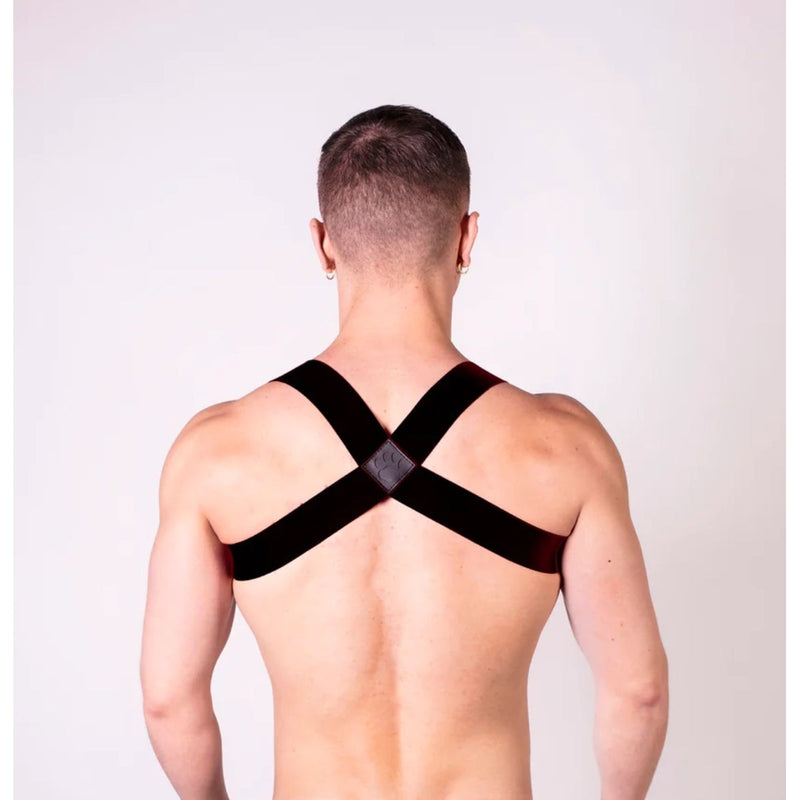 The Prowler RED Sports Harness Lite is a streamlined sporty accessory made from comfortable thick elastic webbing and featuring the Prowler logo on a leather patch. Available in black, red and white and in sizes S/M and L/XL.