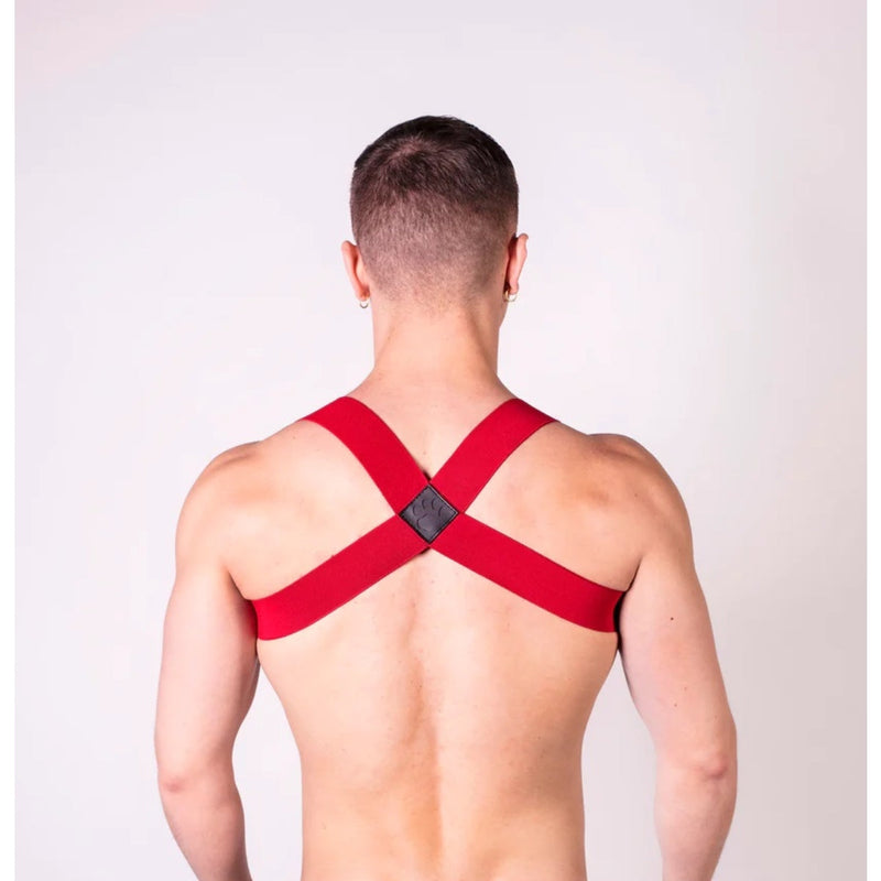The Prowler RED Sports Harness Lite is a streamlined sporty accessory made from comfortable thick elastic webbing and featuring the Prowler logo on a leather patch. Available in black, red and white and in sizes S/M and L/XL.