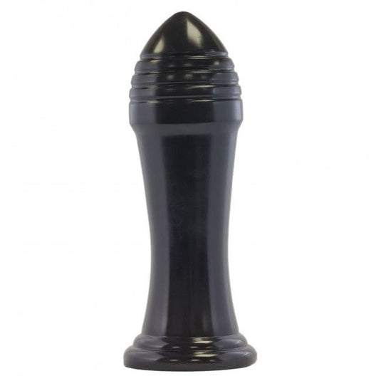 Anal adventures start here with The 12" Tower butt plug. This thick plug has a unique grooved head that widens to a huge 12.5 inches and then narrows to a 11 inch girth shaft for a full feeling during insertion and removal. The wide base makes it safe - how low can you go?!