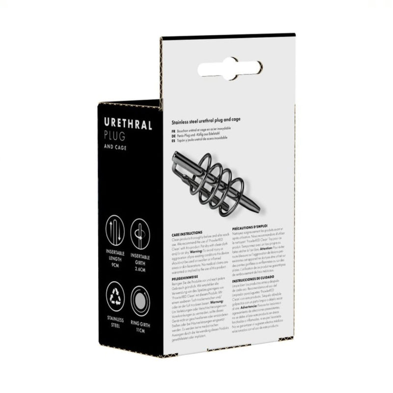 Take your prisoner play to the next level with the Prowler Red Urethral Plug and Cage, which combines the intense stimulation of urethral sounding and the pleasurably torturous sensation of being locked up. The cage features a unique look with rings that wraps along the shaft of the penis. The ring has a girth 11cm, while the urethral plug features an insertable length of 9cm and an insertable girth of 2.6cm.