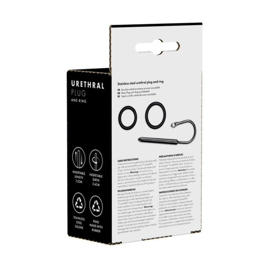 Enjoy double the stimulation with the Prowler RED Urethral Plug and Ring. Featuring rings in two different sizes to fit users of all sizes, the rings are made of stretchy rubber to snugly fit around the base of the penis. The stainless steel plug attaches to the ring to provide urethral stimulation while intensifying sensation along the penis. The plug features an insertable length of 7.5cm and an insertable girth of 2.6cm.