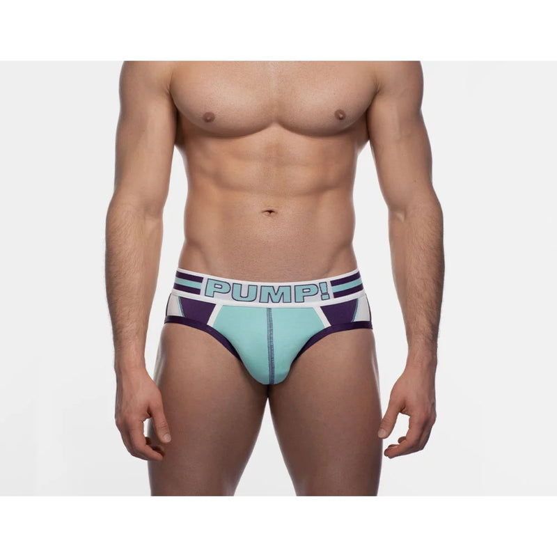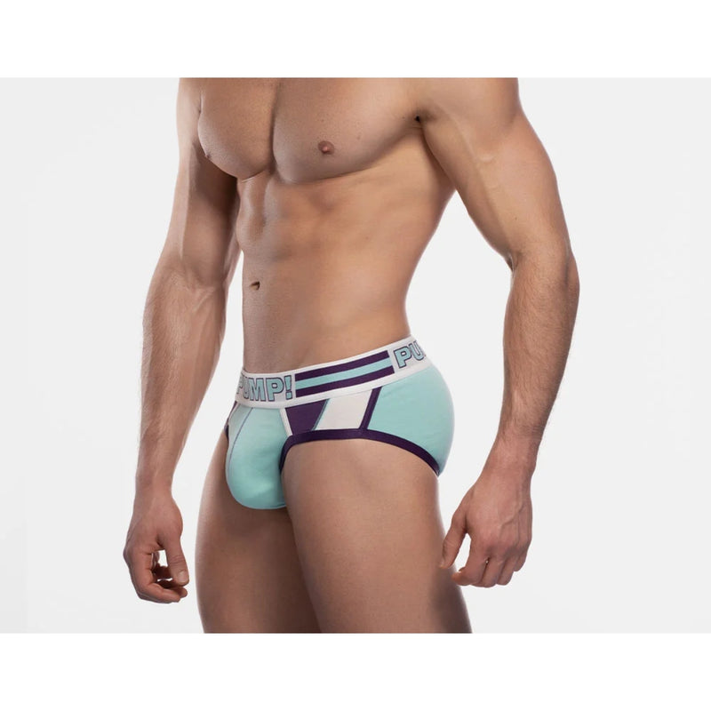 The PUMP! Activate briefs really highlight a combination of use in fabrics. its multi panel body is comprised of various colors in both cotton and mesh along with contrasted piping and stitching on angles that accentuate the body. The cotton backside and pouch deliver comfort and breathability. Topped by the PUMP! signature waistband, this brief activates everyone.