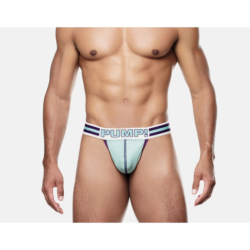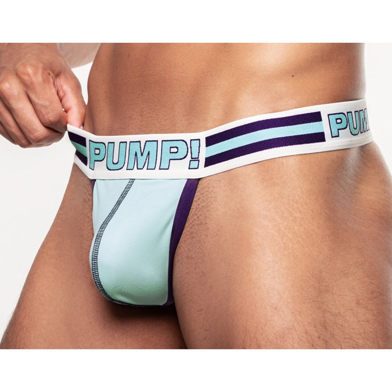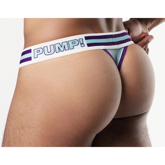 Get into action with the Activate Thong! The soft retro teal microfiber cup and deep purple elastic provide both style and comfort. The microfiber cup, lined with smooth nylon, offers soft support, while the deep purple elastic ensures a secure fit.