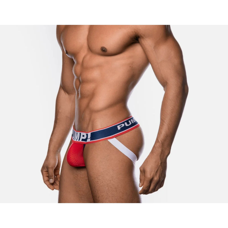 A true classic, the Fever Jock features a cup accented with navy elastic piping and white central stitching. The 50 mm waist elastic is tri-color: red, navy and white, soft yet sturdy with unbridled stretchability and hold. Complemented beautifully by a sharp white rear elastic to provide all day comfort and style.