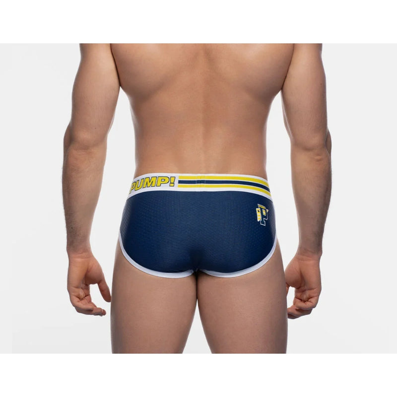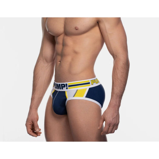 The PUMP! Recharge briefs really highlight a combination of use in fabrics. its multi panel body is comprised of various colors in both cotton and mesh along with contrasted piping and stitching on angles that accentuate the body. The mesh backside and pouch deliver comfort and breathability. Topped by the PUMP! signature waistband, this brief is the recharge you needed.
