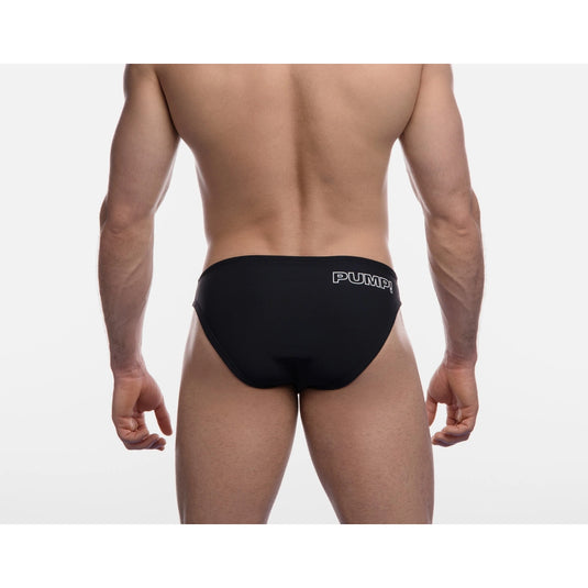 Nothing is more timeless than black and white. The Black Water Cheeky sports a low-rise cut and built-in leg and waist elastics for the perfect fit to show off your assets. With the classic white PUMP! logo printed on the rear you will be sure to turn heads whether you are walking on the beach or swimming in the pool.