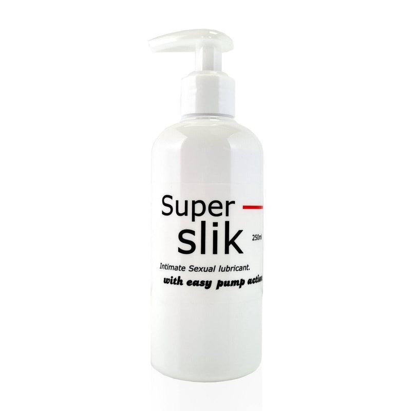 Super Slik is a water based, non-staining lubricant that will heighten your sexual pleasure. It will not harm condoms and comes in a very handy pump dispenser. Only a small amount is needed, as it supplements your natural lubrication, which in turn enhances your sexual intimacy.