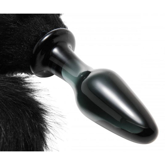 Tailz Midnight Fox Glass Butt Plug With Tail Black