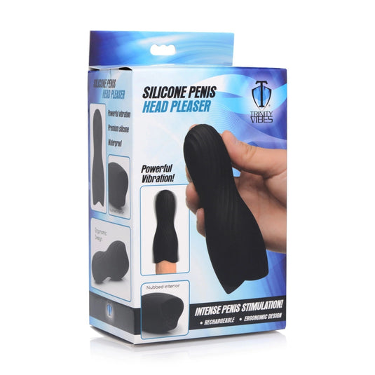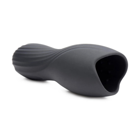 This stretchy silicone sleeve slips over the most sensitive part of your shaft to stimulate it with intense vibration! Apply a little water-based lubricant to create a slippery orifice to slide in and out of. The multitude of nubs within will massage the head of your penis while you experiment with 3 speeds of buzzing and 7 patterns of powerful pulsation. The grooved texture on the outside makes it easy to keep a firm grip on, even during vigorous use. This rechargeable tool is even waterproof for wet, hot fun in the shower. Clean after use with mild soap or toy cleaner and avoid use with silicone lubricants.